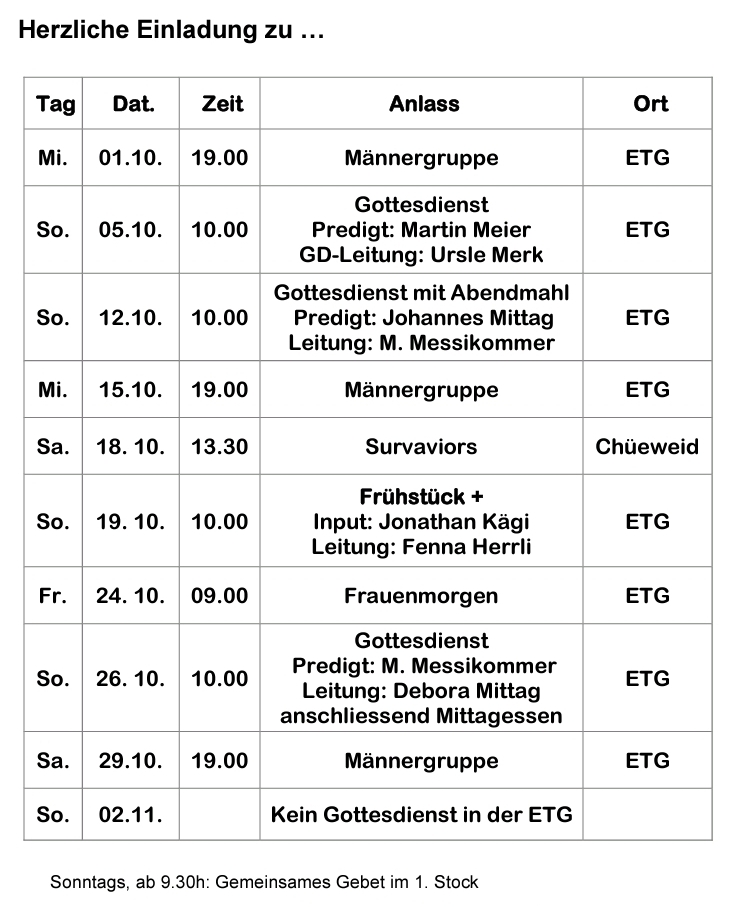 Wir haben diverse Programme, zu denen Sie herzlich eingeladen sind!